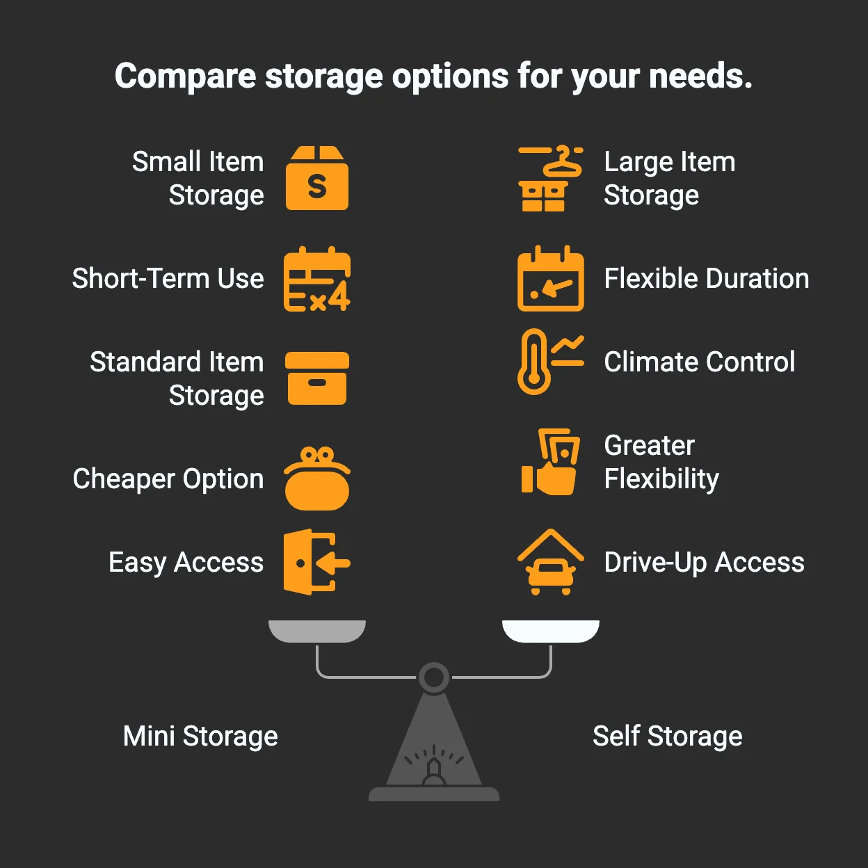While the differences may seem subtle, understanding them helps you choose the right solution for your lifestyle or business. If you only need to store a few items for a few months, mini storage may be perfect. If you need flexibility, scalability, or climate-controlled protection, self storage is often the better choice.